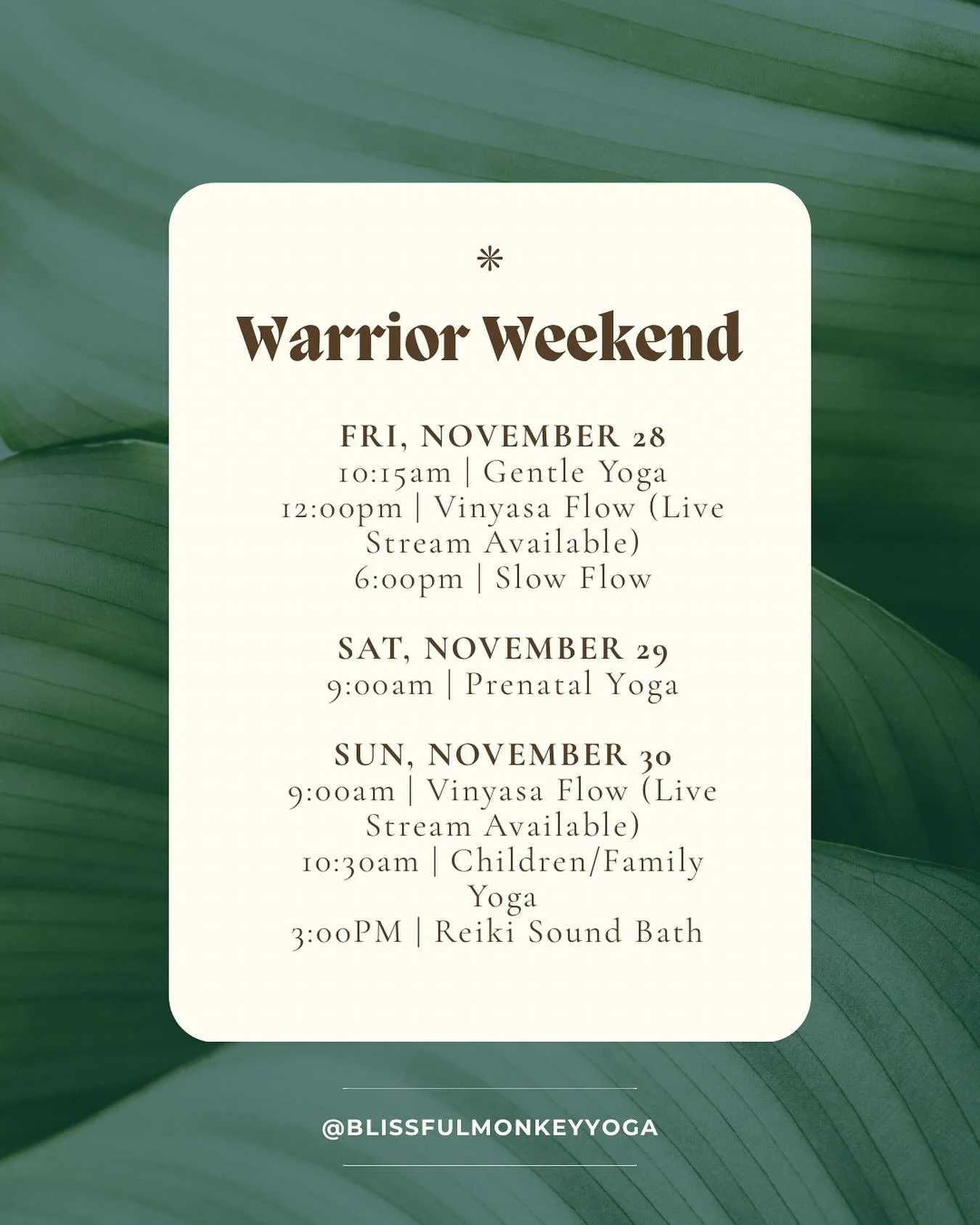 Check out and follow us on Instagram for announcements, cancellations, and updates!