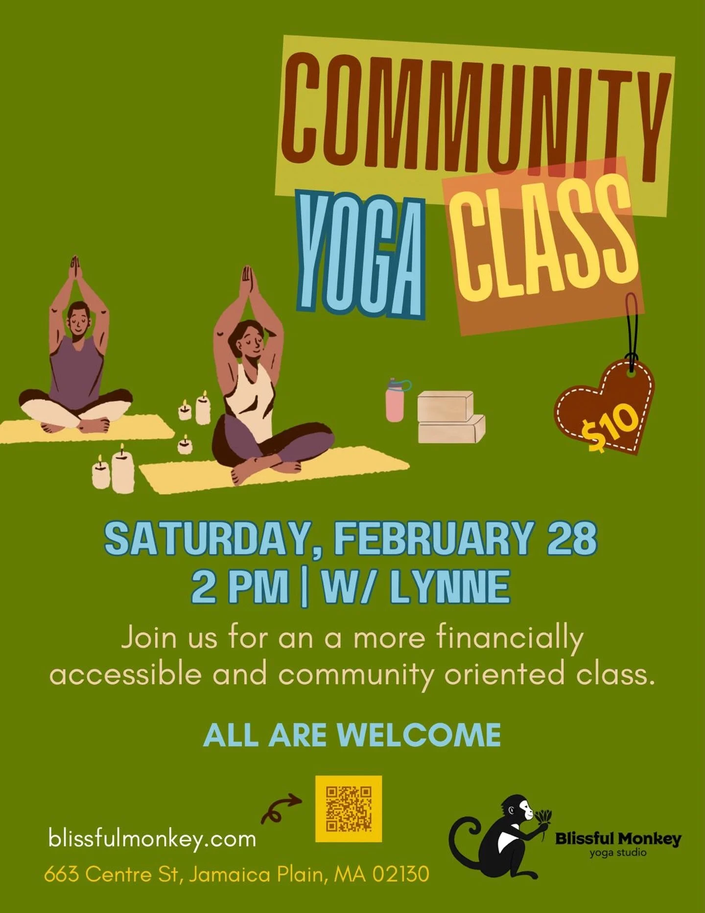Find your bliss with us. Offering classes at our lovely studio in the vibrant neighborhood of Jamaica Plain or live-streaming classes through Mindbody. Mats and other props available for use. We look forward to seeing you on the mat!